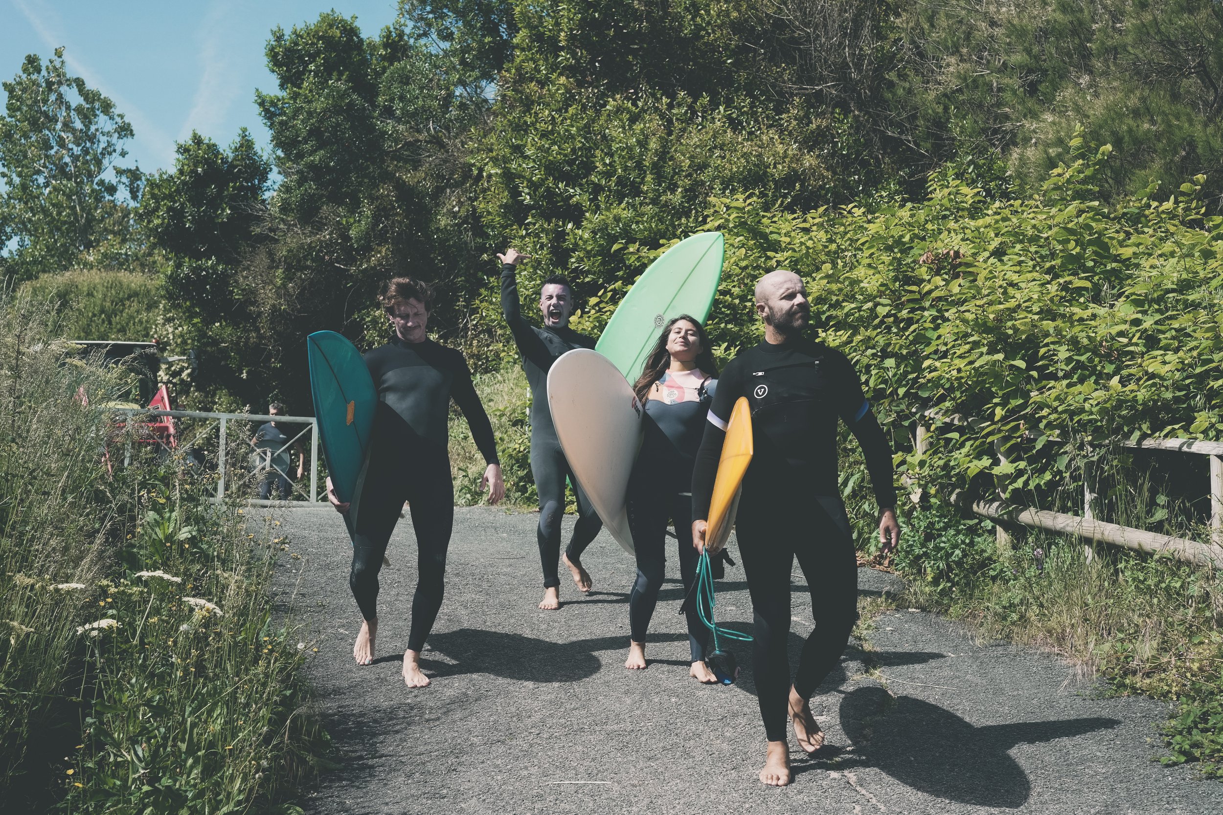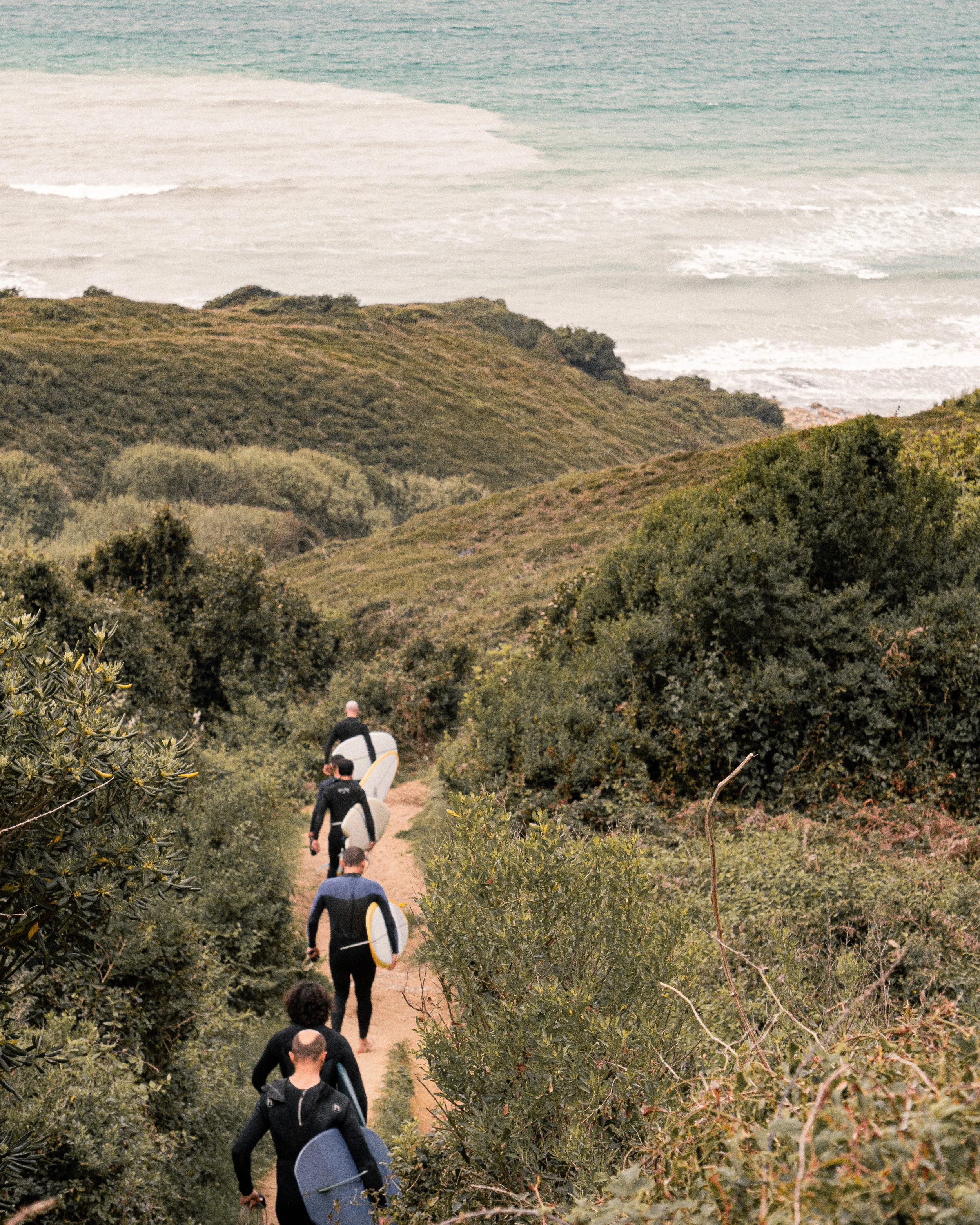 Surf en groupe loin des endroits les plus fréquentés de la côte afin de surfer un maximum de vagues sur des spots très variés.